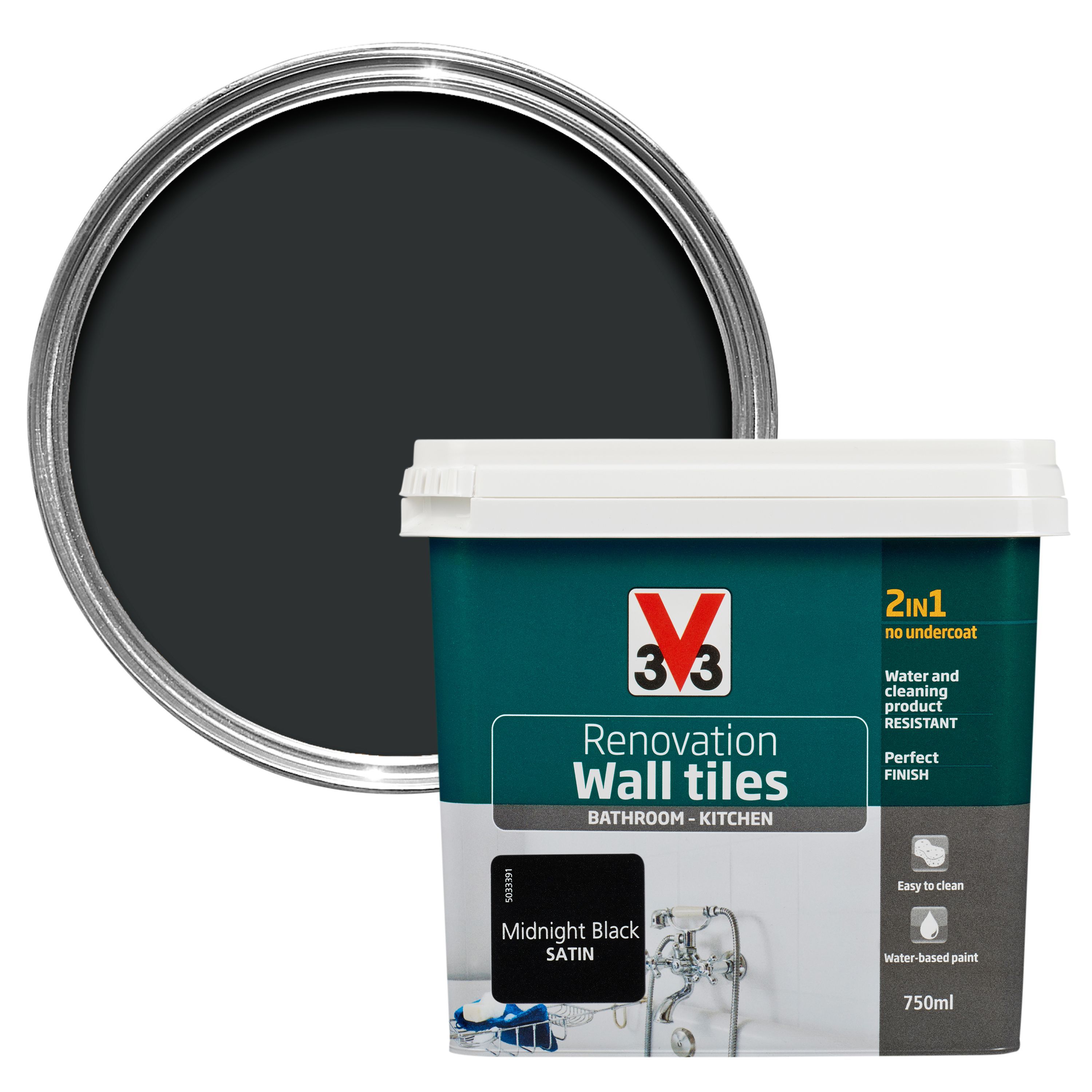 V33 Renovation Midnight Black Satin Wall Tile Paint 0 75l Diy At B Q